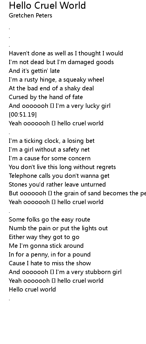 | [00:52.40] | Yeah ooooooh � hello cruel world |