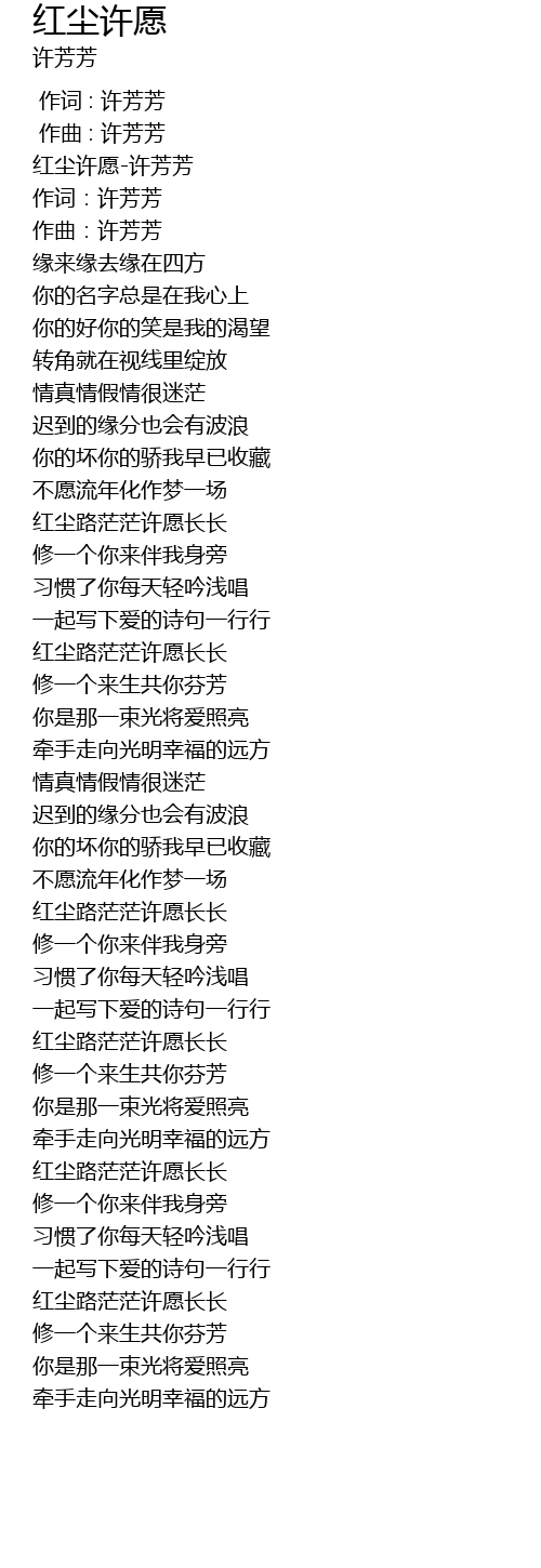 | [00:11.418] | 红尘许愿-许芳芳 |