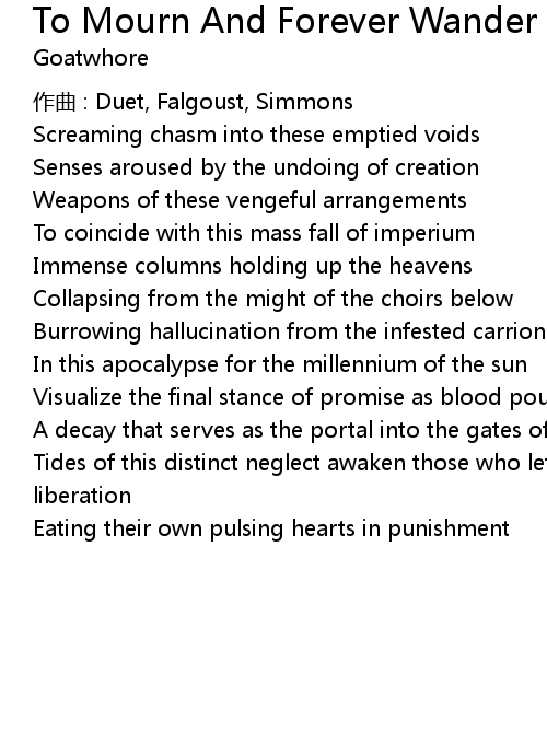 | Song | To Mourn And Forever Wander Through Forgotten Doorways |