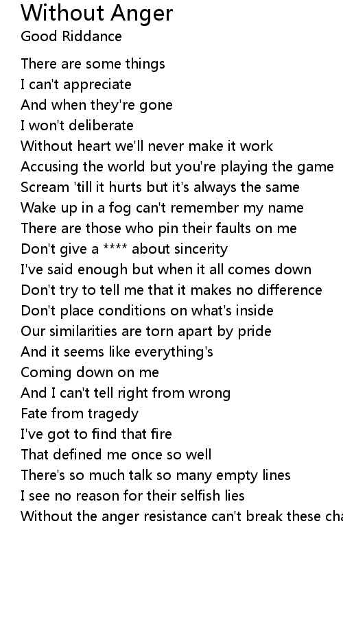 Without Anger Lyrics