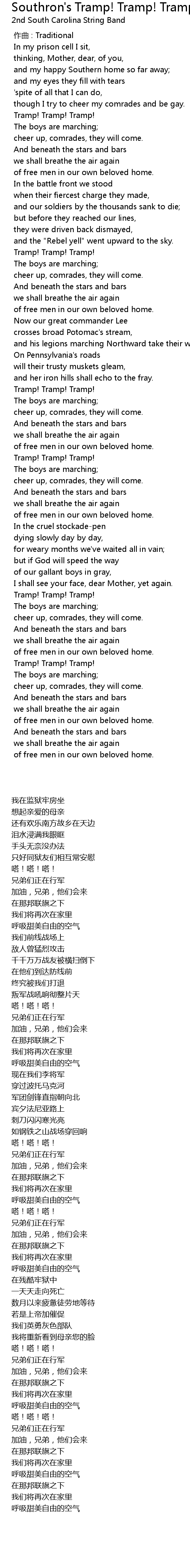| Song | Southron's Tramp! Tramp! Tramp! |