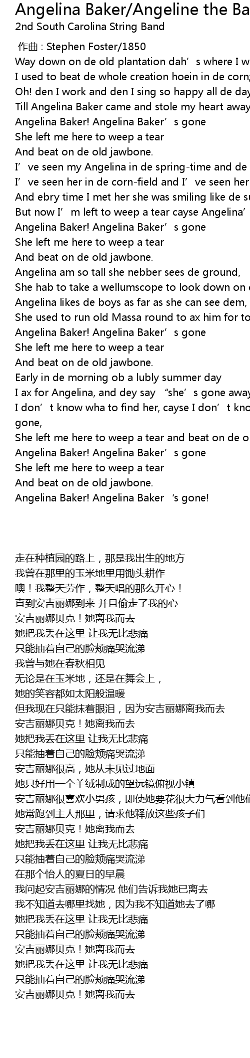 | [00:29.512] | Angelina Baker! Angelina Baker' s gone |