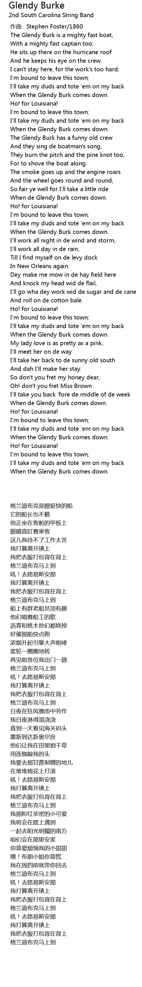 | [00:40.009] | When the Glendy Burk comes down. |