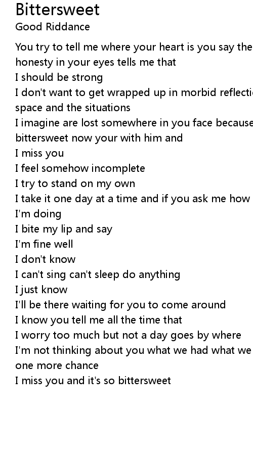 I miss you and it's so bittersweet |