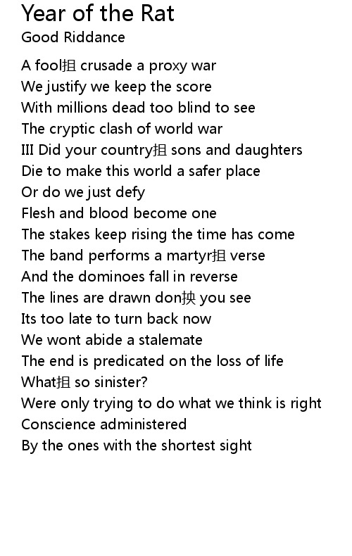 | Song | Year of the Rat |