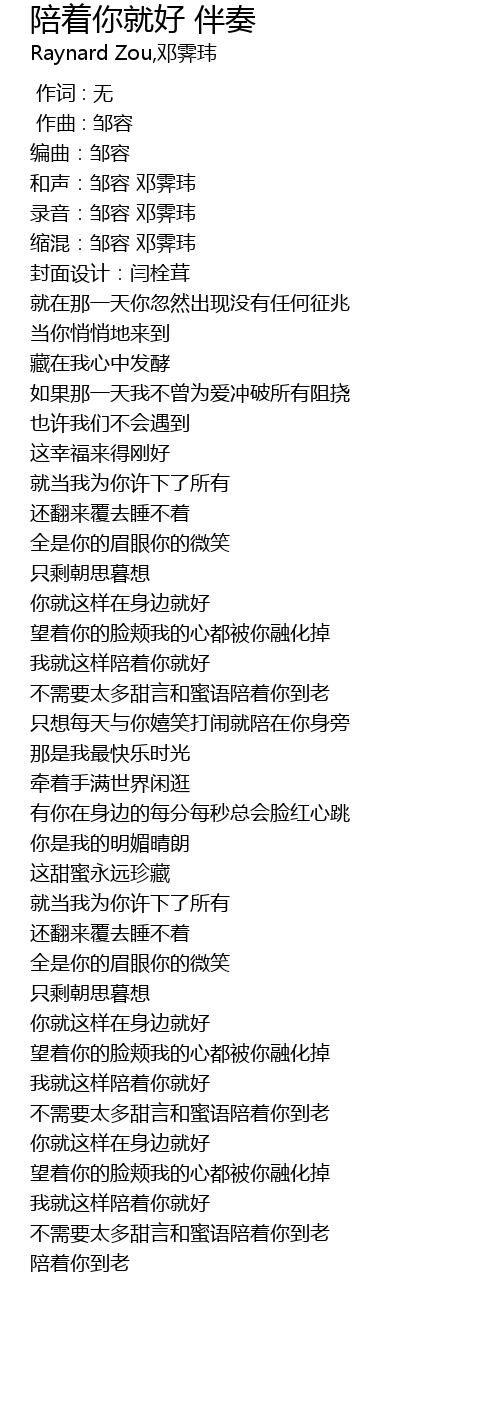 | [02:57.880] | wǒ jiù zhè yàng péi zhe nǐ jiù hǎo |