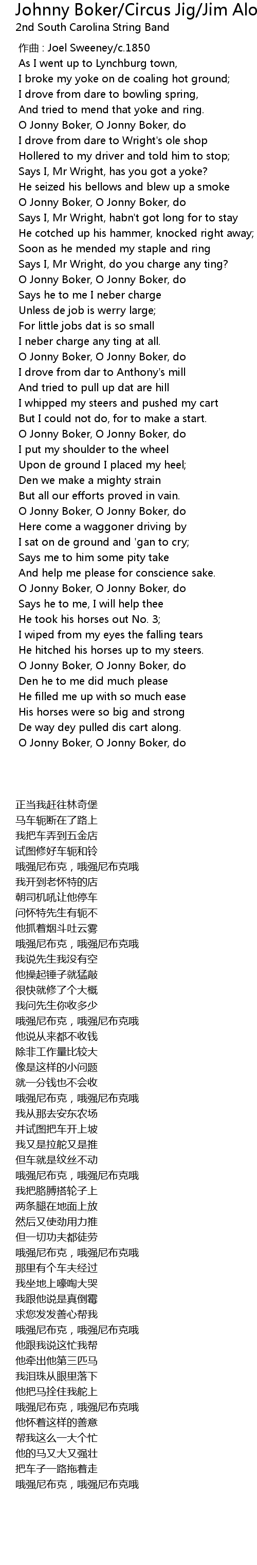| [00:00.000] | zuò qǔ : Joel Sweeney c. 1850 |