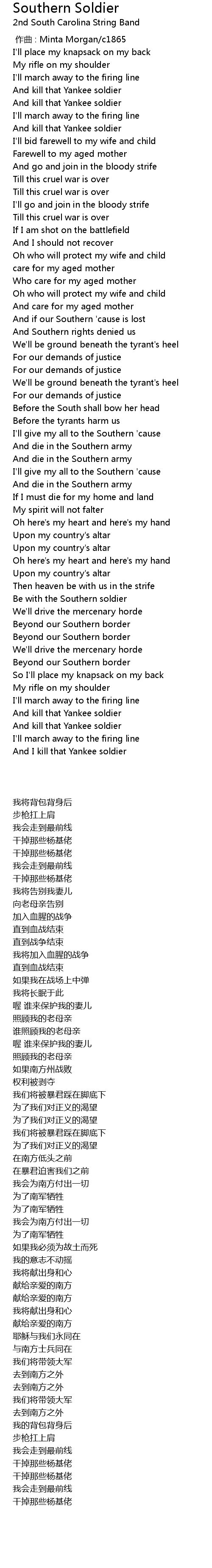 | [02:57.33] | I'll give my all to the Southern 'cause |