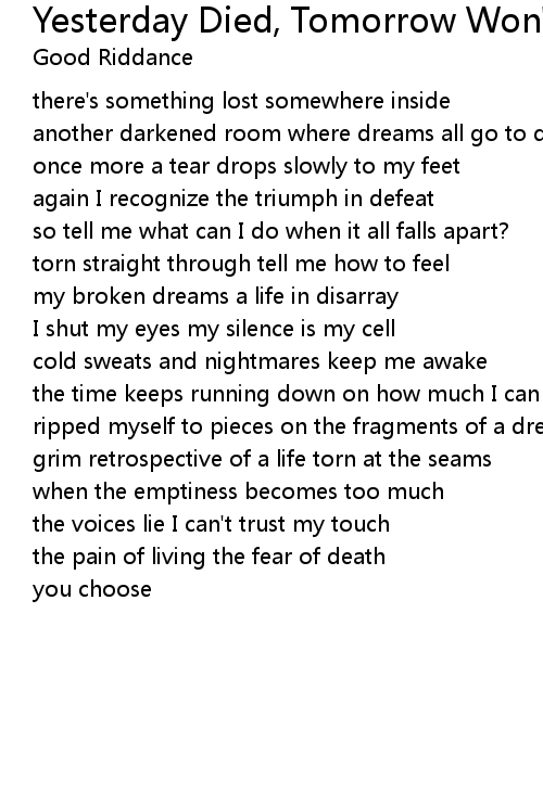 Yesterday Died, Tomorrow Won't Be Born Lyrics
