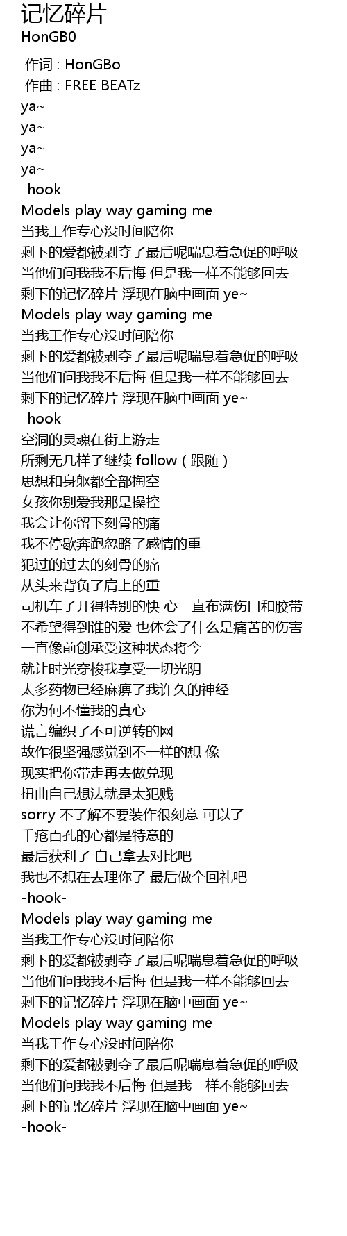 | [00:00.000] | 作词 : HonGBo |
