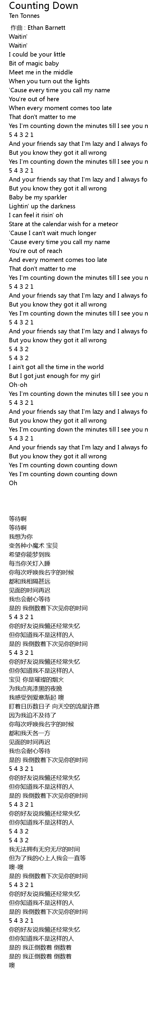 | [03:02.52] | Yes I' m counting down counting down |
