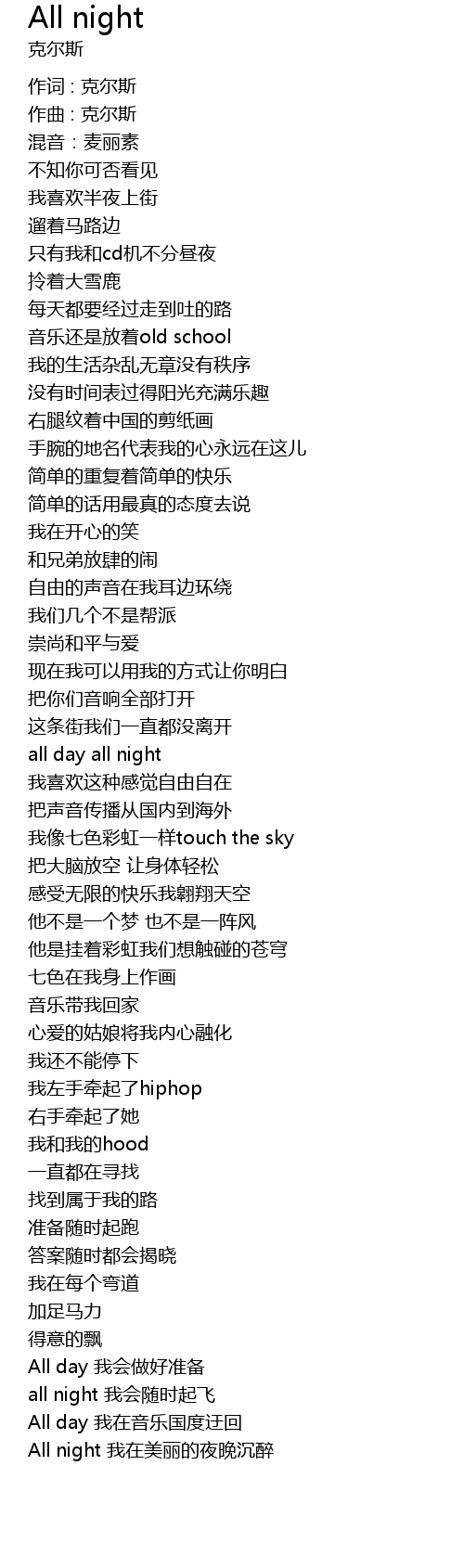 | 作词 : 克尔斯 | |
