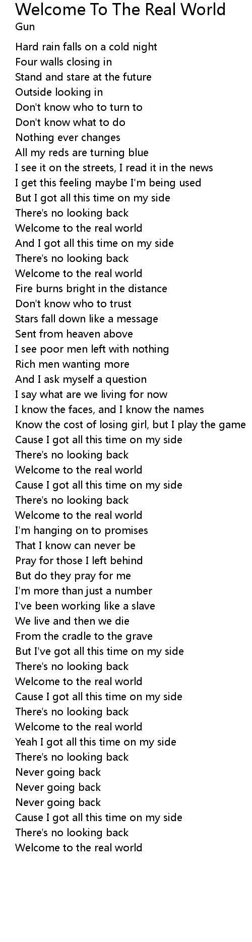 | Welcome to the real world | |