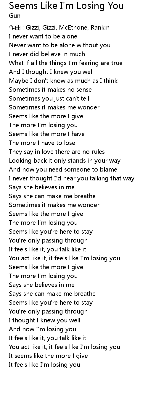 | You act like it, it feels like I' m losing you | |