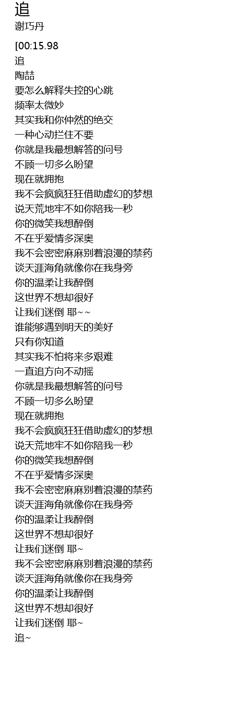 | [00:38.31] | nǐ jiù shì wǒ zuì xiǎng jiě dá de wèn hào |