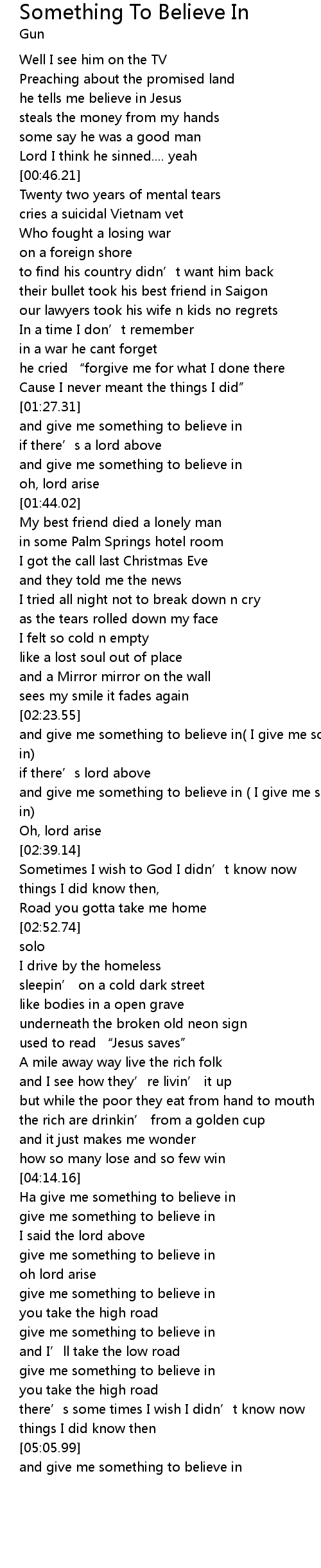 | [02:25.79] | and give me something to believe in( I give me something to believe in) |
