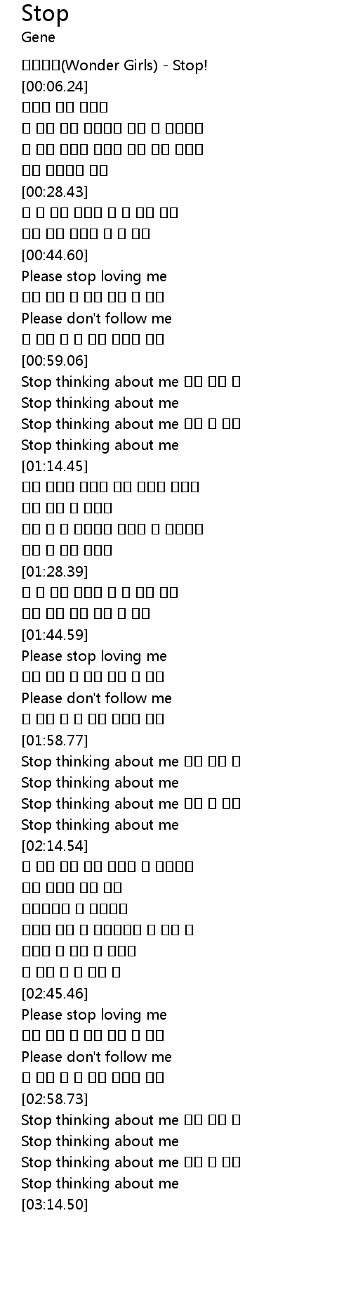 | [03:00.57] | Stop thinking about me 나는 아닌 걸 |