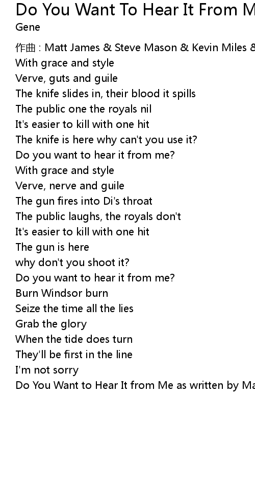 | Do You Want to Hear It from Me as written by Martin Rossiter Kevin Miles |