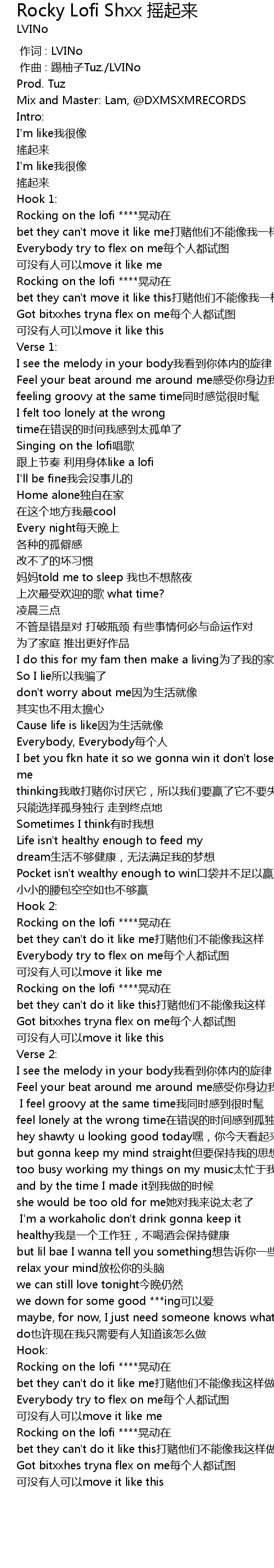 | [01:18.973] | 跟上节奏 利用身体like a lofi |
