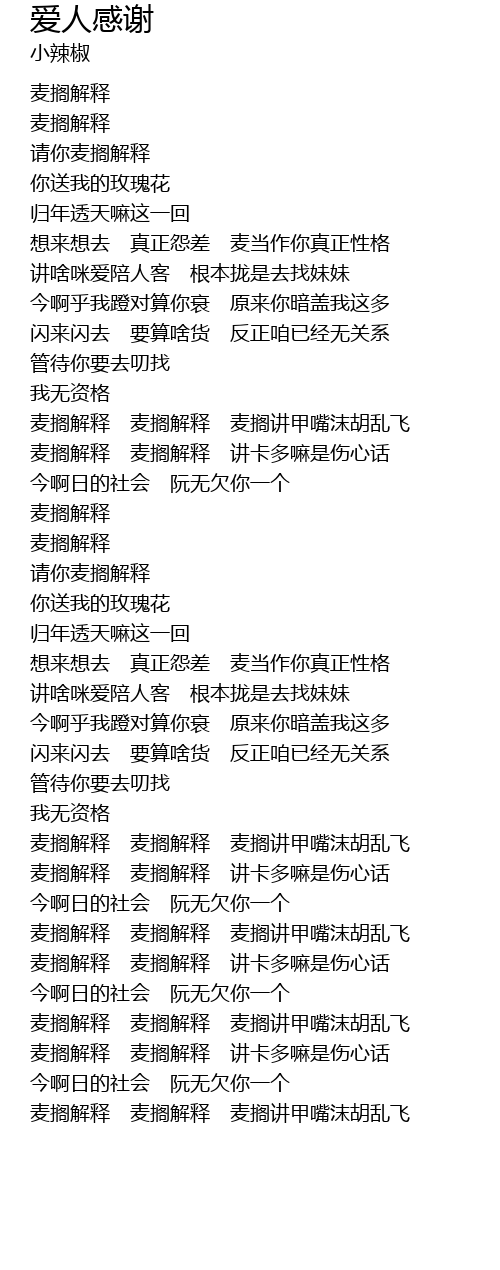 | [03:05.37] | 麦搁解释 麦搁解释 讲卡多嘛是伤心话 |