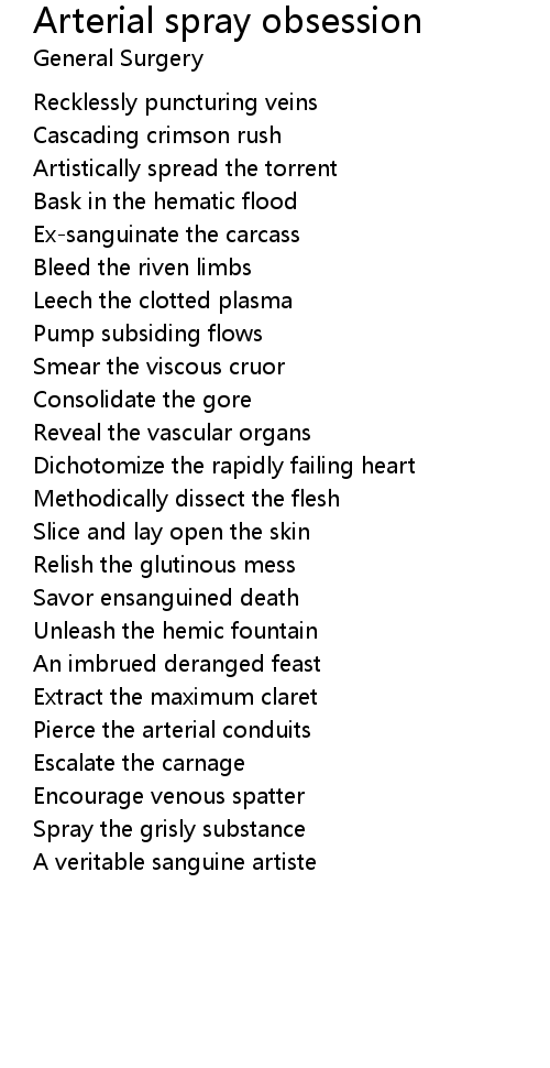 Arterial spray obsession Lyrics
