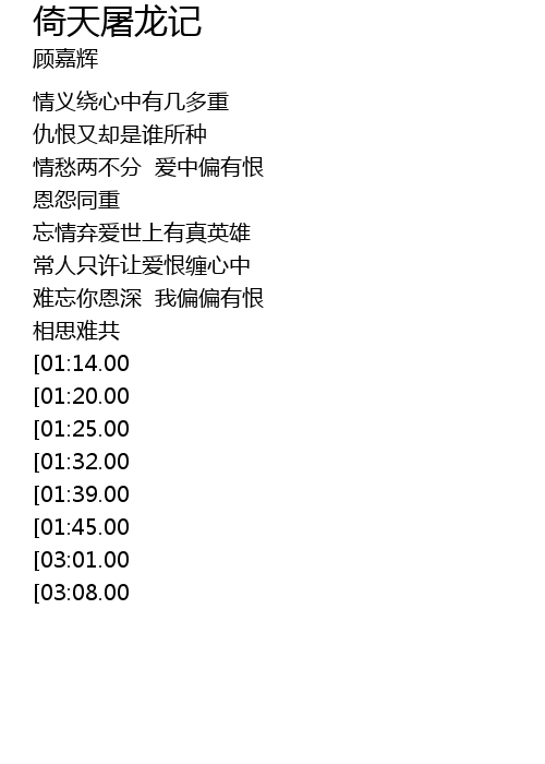 | [03:13.00][03:01.00][01:51.00] | 屠龙刀倚天剑斩不断 |