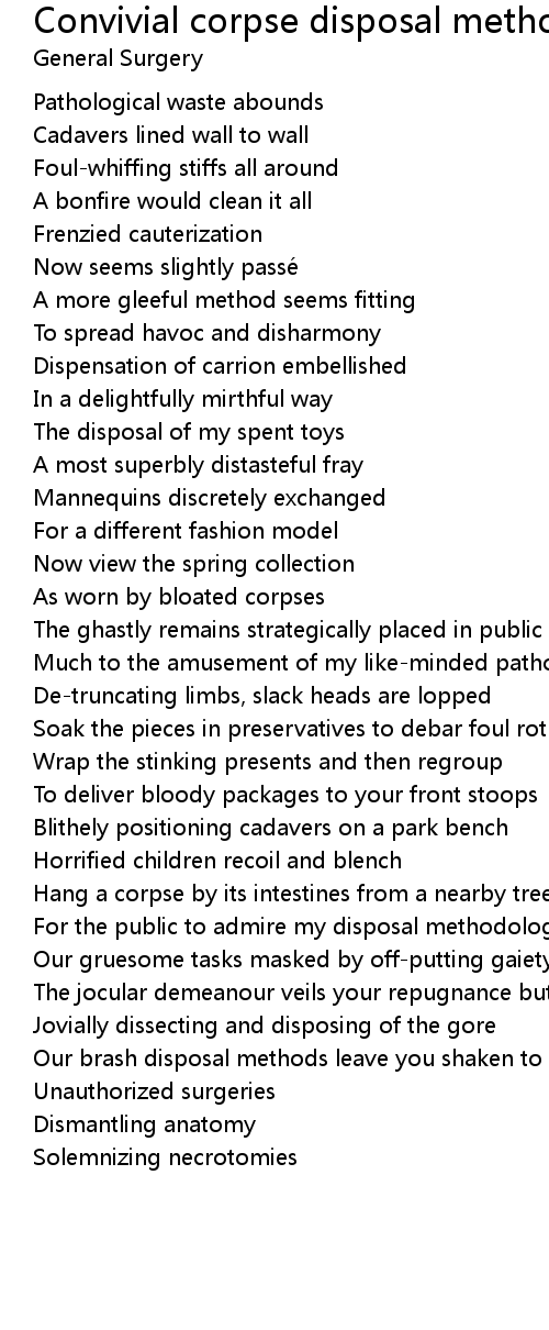 | Song | Convivial corpse disposal methodology |
