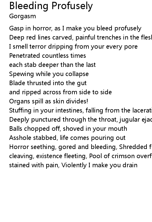 Horror seething, gored and bleeding, Shredded flesh overflowing, razor