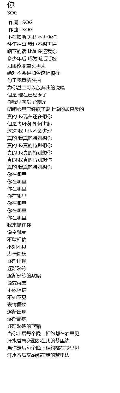 | [00:00.000] | 作词 : SOG |