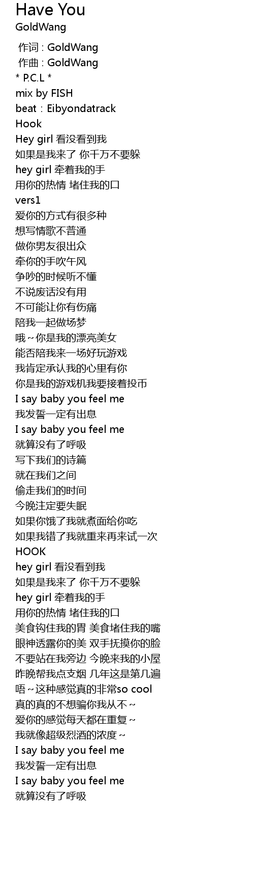 | [02:14.491] | hey girl kàn méi kàn dào wǒ |