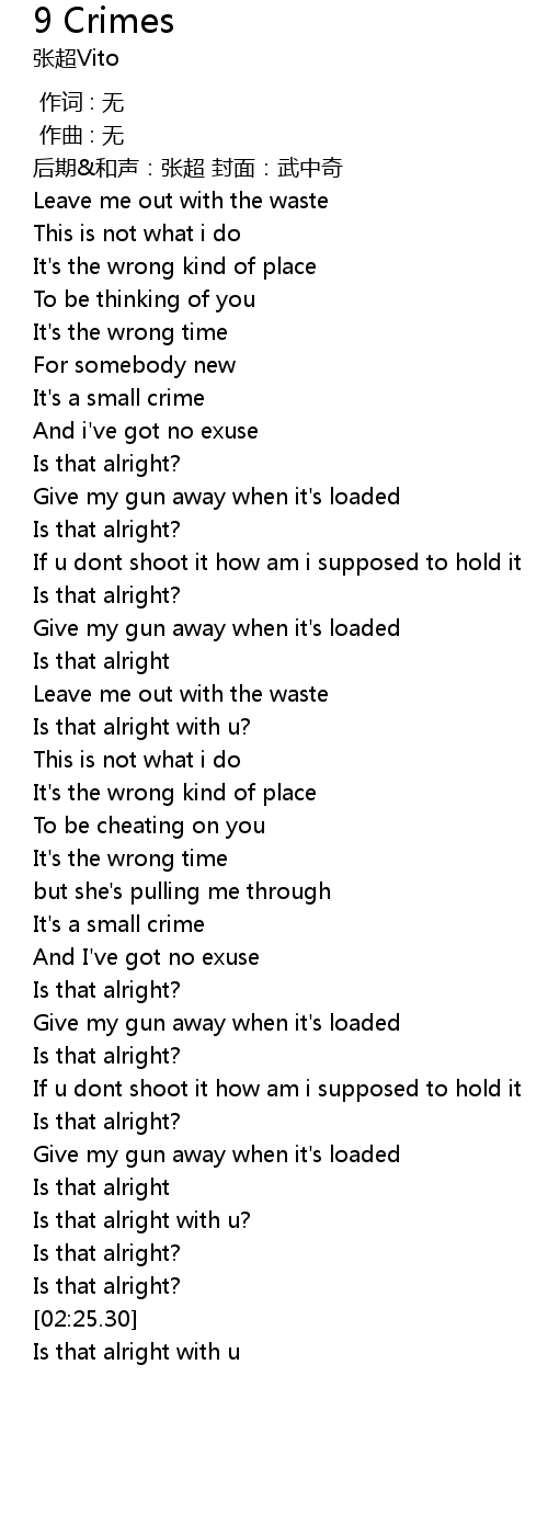 | [00:02.00] | 后期&和声:张超 封面:武中奇 |