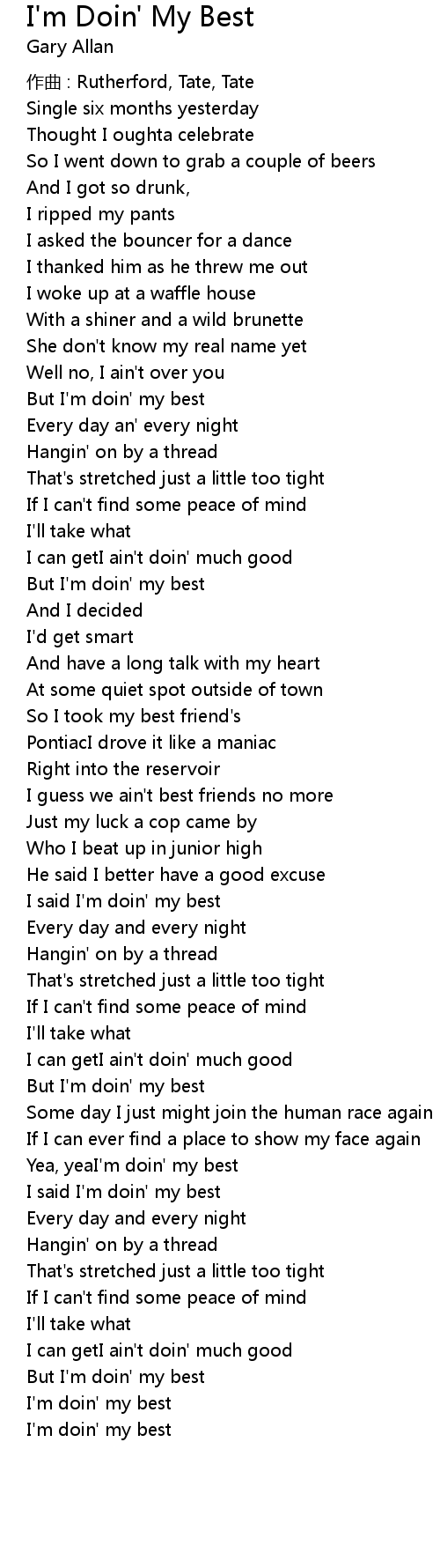 | I said I'm doin' my best | |