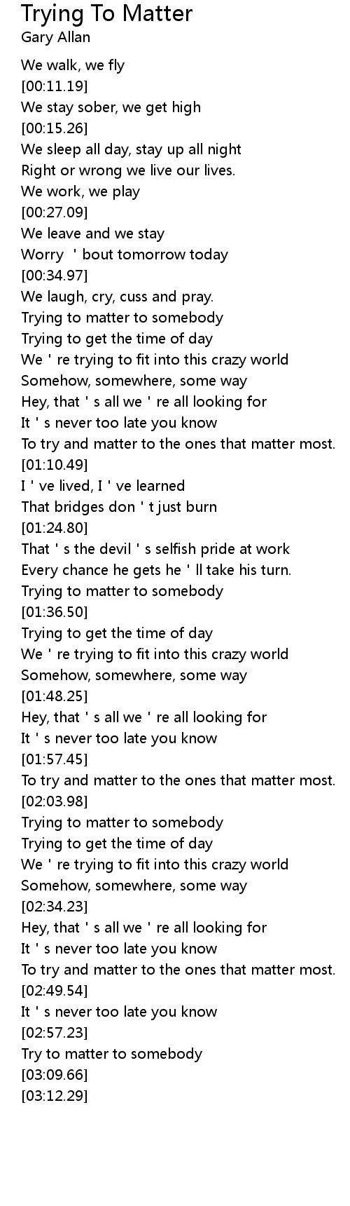 | [00:39.85] | Trying to matter to somebody |