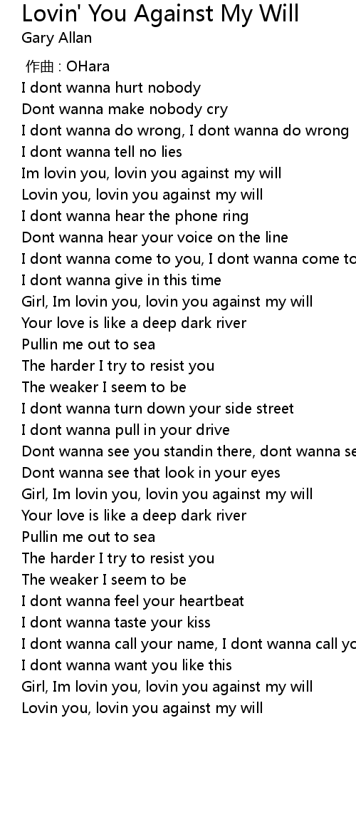 | [00:58.18] | Girl, Im lovin you, lovin you against my will |
