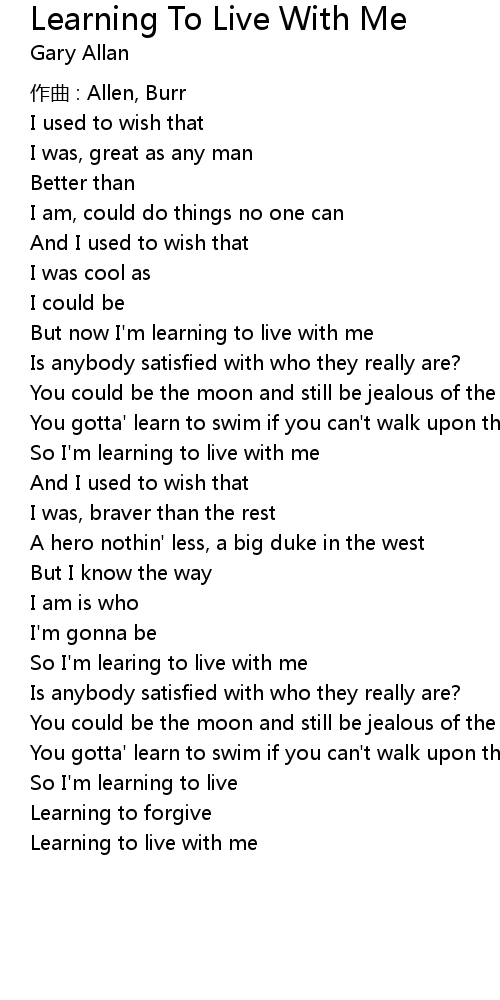 | So I'm learing to live with me | |