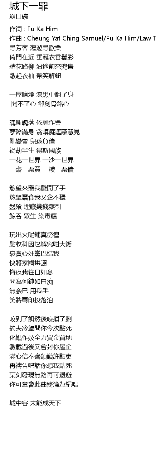 | zuo qu : Cheung Yat Ching Samuel Fu Ka Him Law Tsz Yeung | |