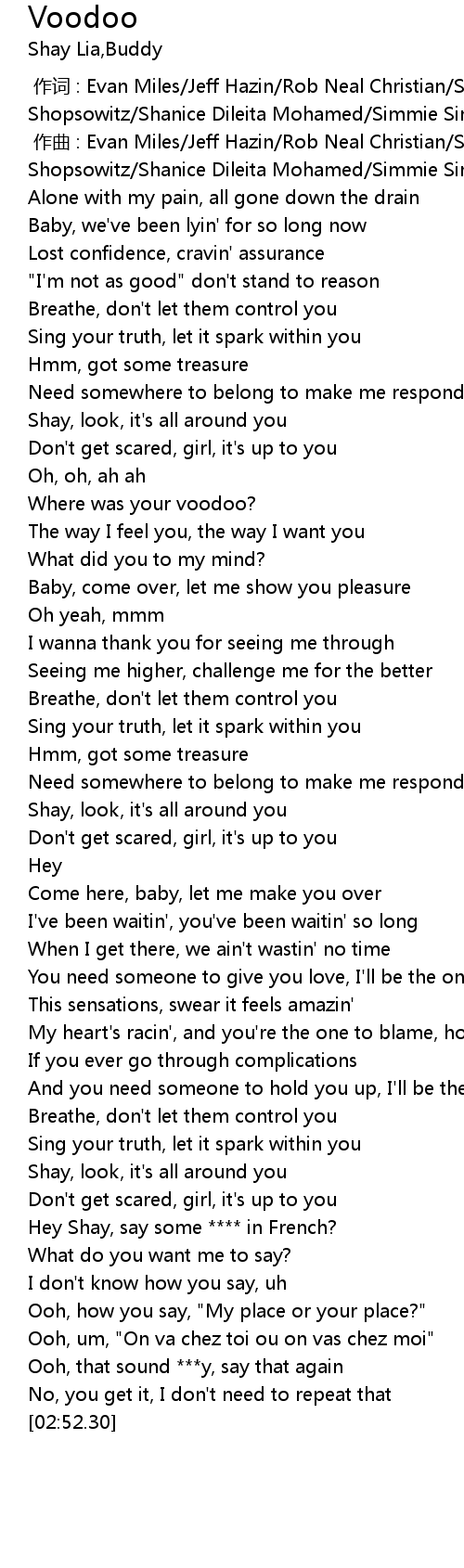 | [02:34.43] | Hey Shay, say some **** in French? |