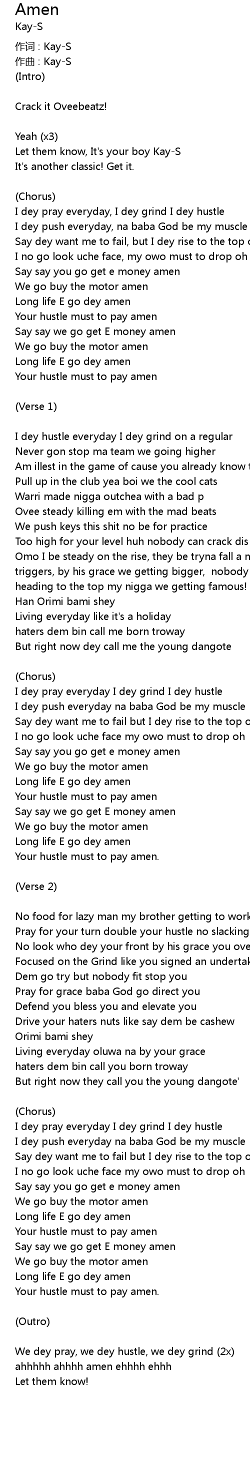 | I dey pray everyday I dey grind I dey hustle | |