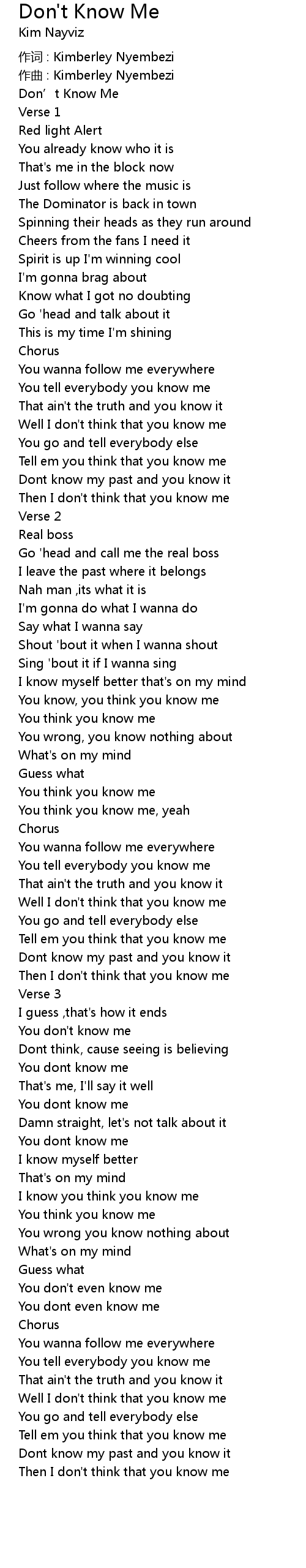 | 作词 : Kimberley Nyembezi | |