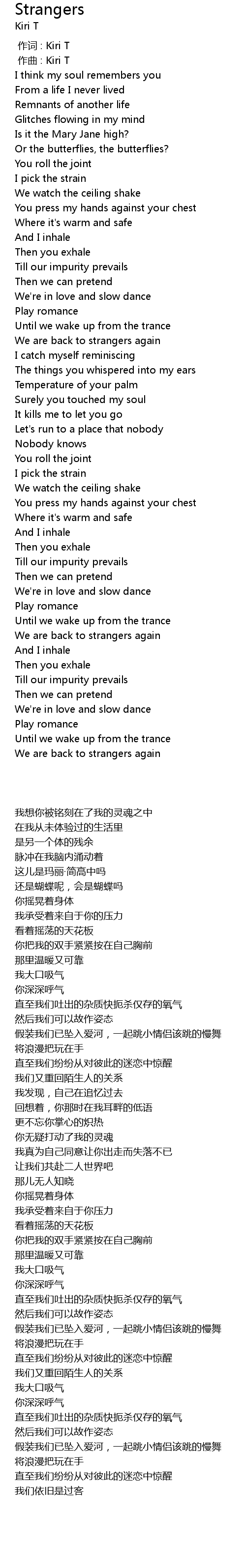 | [00:00.000] | 作词 : Kiri T |