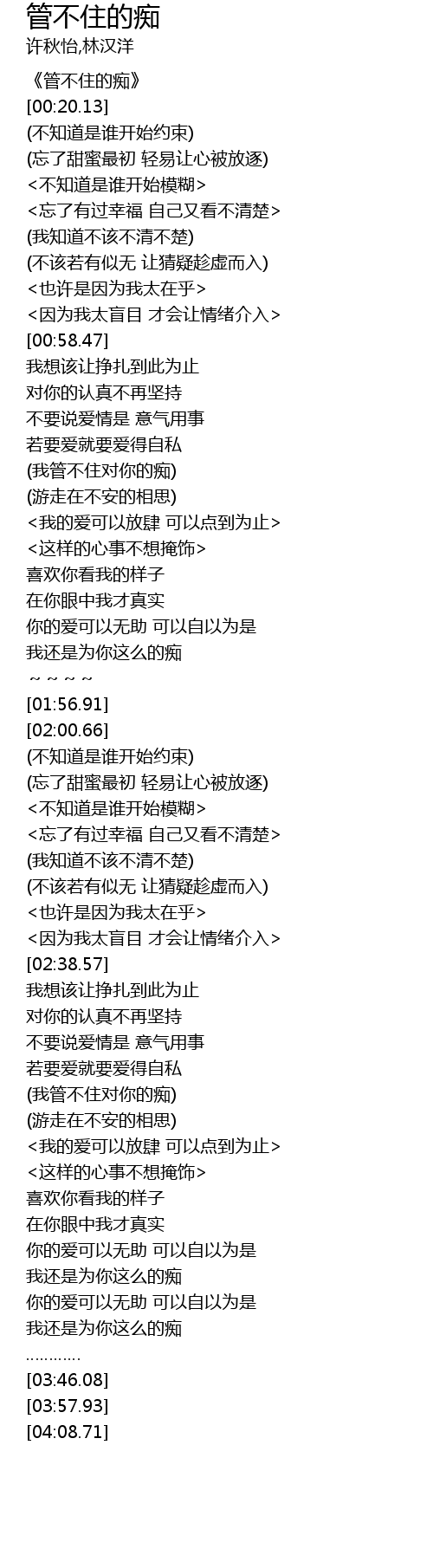 | [02:59.26] | wǒ guǎn bú zhù duì nǐ de chī |