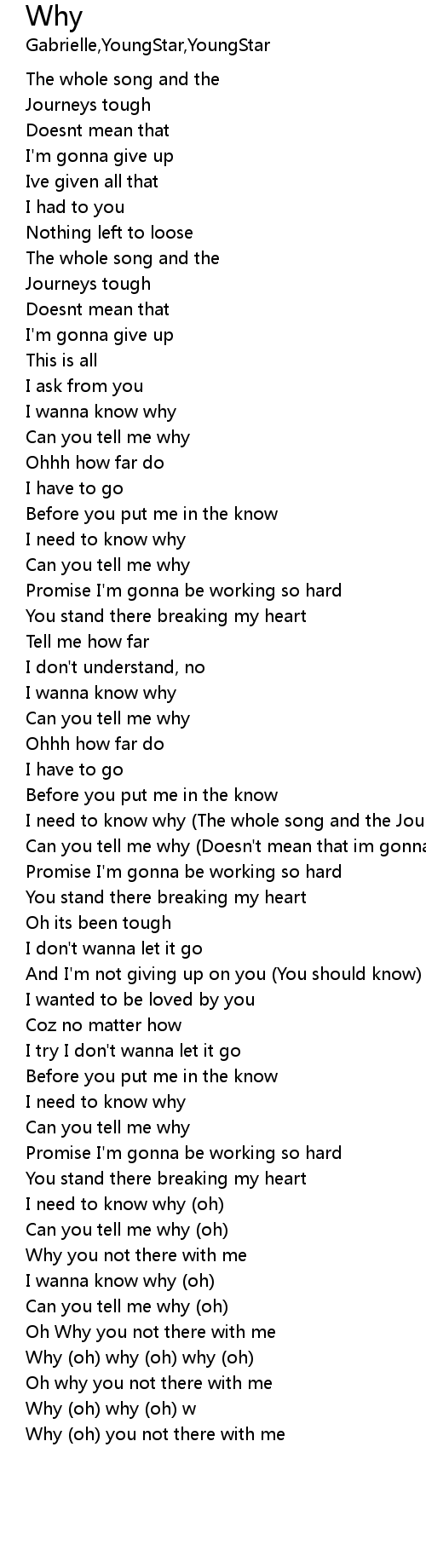 | Can you tell me why (Doesn't mean that im gonna give up) | |