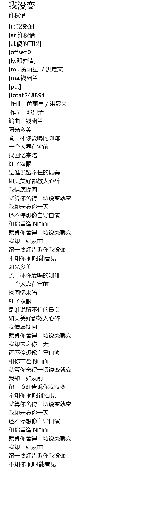 | [00:00.00] | 作曲 : 黄丽星 / 洪晟文 |