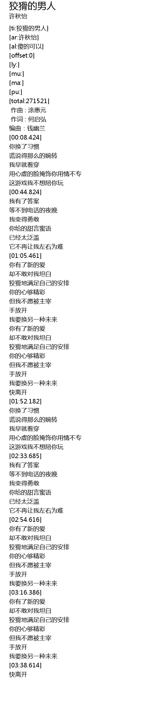 | [01:32.755] | 狡猾地满足自己的安排 |