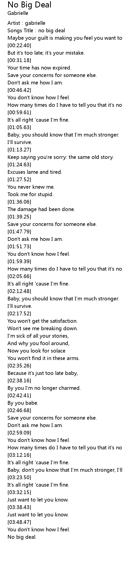 | [00:05.54] | Songs Title:no big deal |