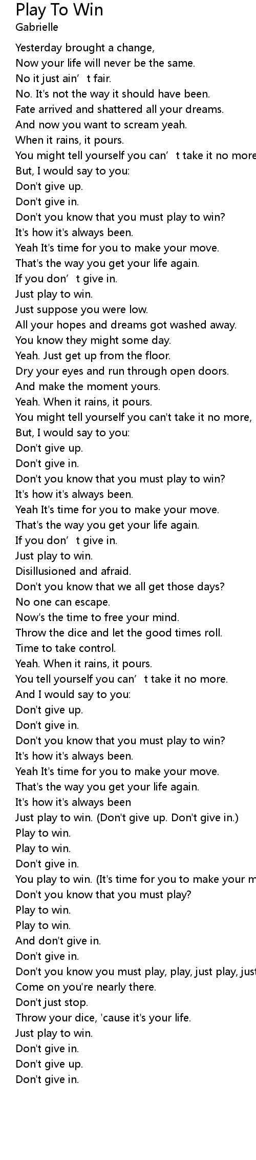 | Don' t you know you must play, play, just play, just play to win? | |