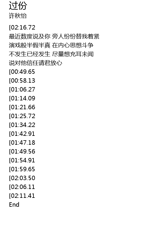 | [03:50.86][02:11.41] | 过份 |