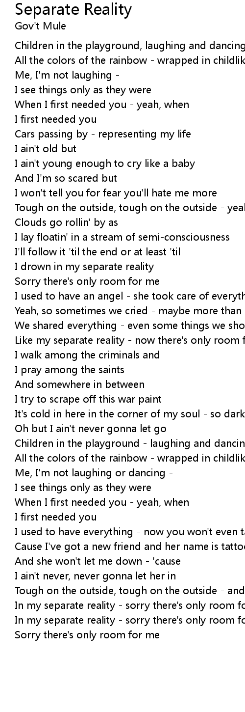 In my separate reality - sorry there's only room for me, for me |