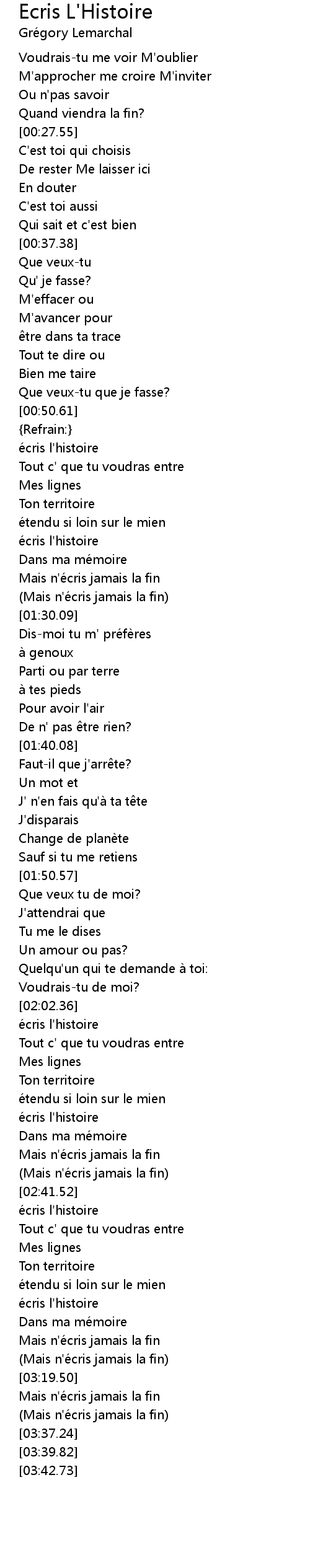 | [03:25.41] | (Mais n'écris jamais la fin) |