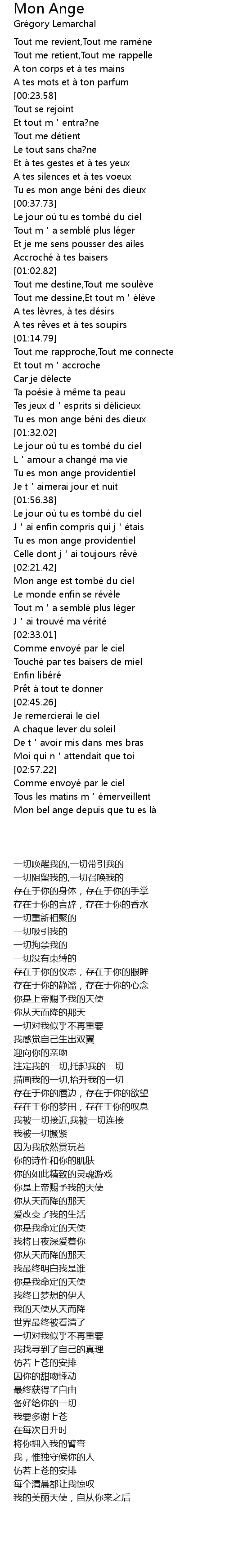 | [02:22.72] | Mon ange est tombe du ciel |